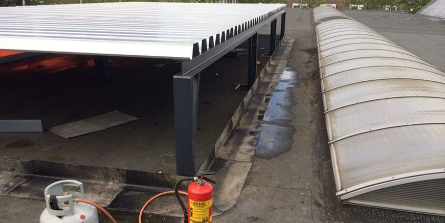 L.P. Borsboom Onderhoud heeft voor de Opel dealer aan de Kadelaan 1 te Zoetermeer een dakopbouw gerealiseerd. Het dak van de werkplaats is ruim een meter verhoogd.