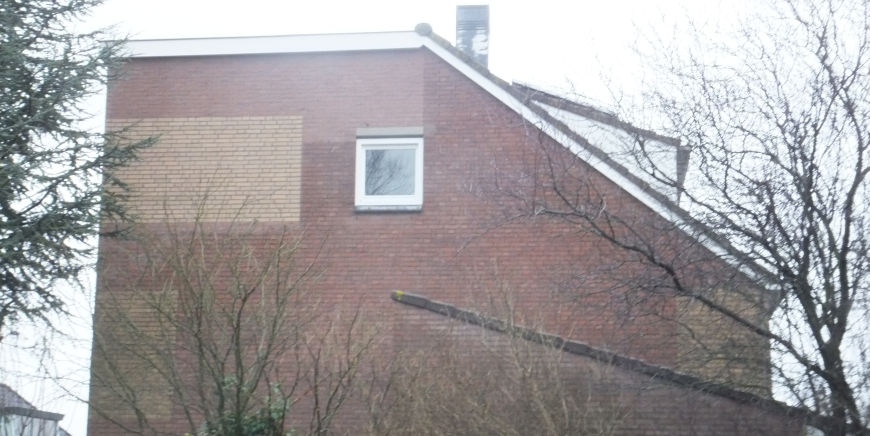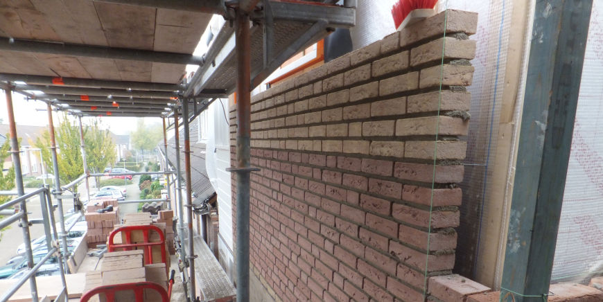 Borsboom heeft ook de buitengevel opgemetseld in twee verschillende steenkleuren. Deze stenen zijn in samenwerking met een expert op het gebied van metselstenen uitgezocht.