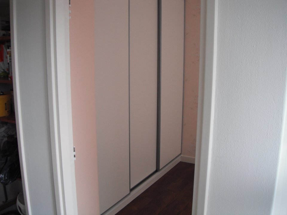 Voor een nieuwe woning in Zoetermeer had L.P. Borsboom Onderhoud de eer om een schuifkastenwand op maat te maken. Op basis van de indeling van de klant hebben we een passend ontwerp gemaakt. Genoeg plankruimte en een apart hanggedeelte. Tot slot hebben we de schuifdeuren pasklaar vervaardigd en gemonteerd.