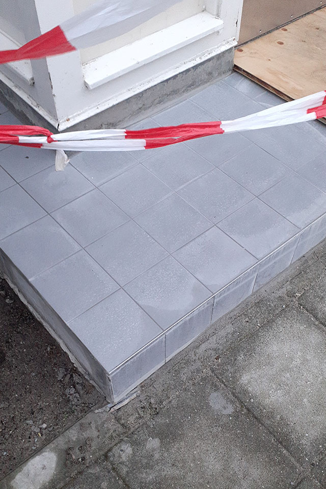 Zodra dit klaar was hebben we nieuwe tegels geplaatst en alles netjes afgewerkt. Daarnaast hebben we het straatwerk aangepakt, zodat voor de mindervalide het makkelijk is om het gebouw te betreden.