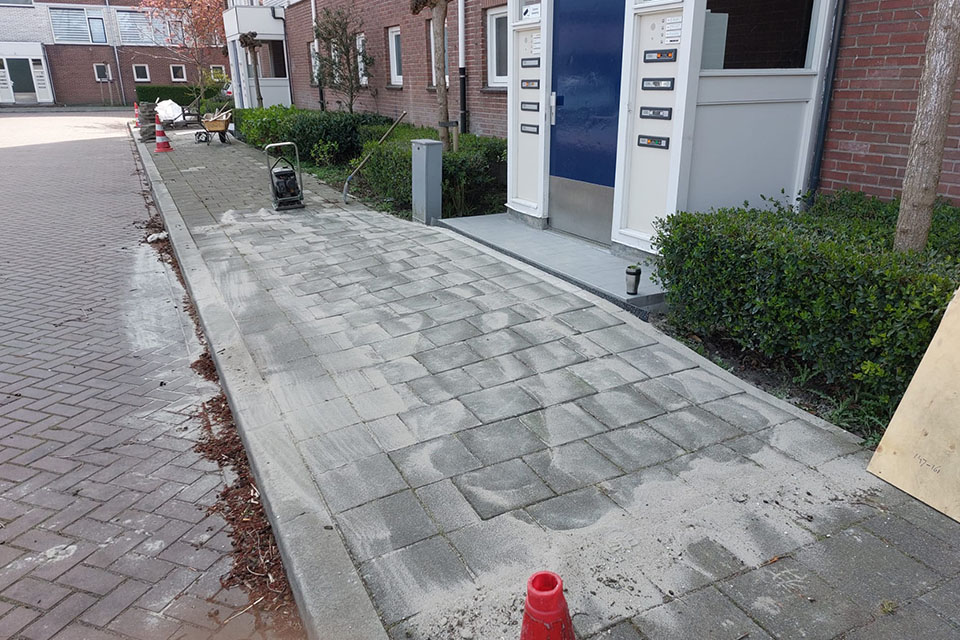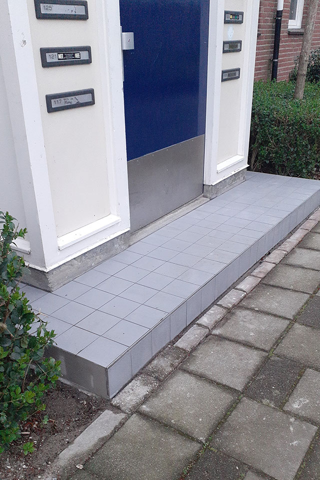 Dit herhaalde we voor elke ingang. Het eindresultaat: veilige en mooie entrees die voor iedereen goed te betreden zijn. Blij dat wij de bewoners hebben kunnen voorzien!